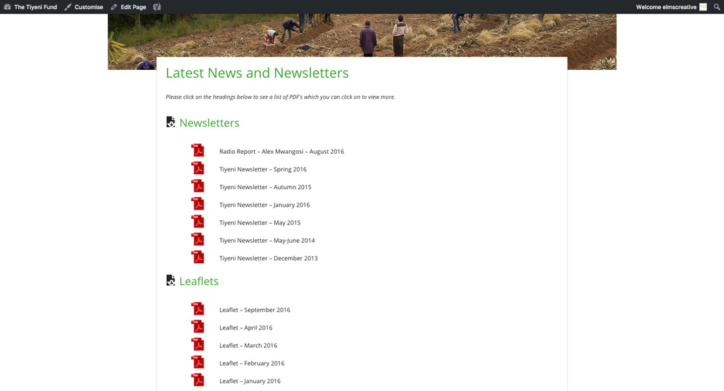 Tiyeni is an organisation which helps rural towns in Africa to help enhance their sustainable farming practices so they can become more self sufficient and not suffer from starvation. They came to us to enhance their current website as it was out of date and wanted it to be more professional in terms of what they did.